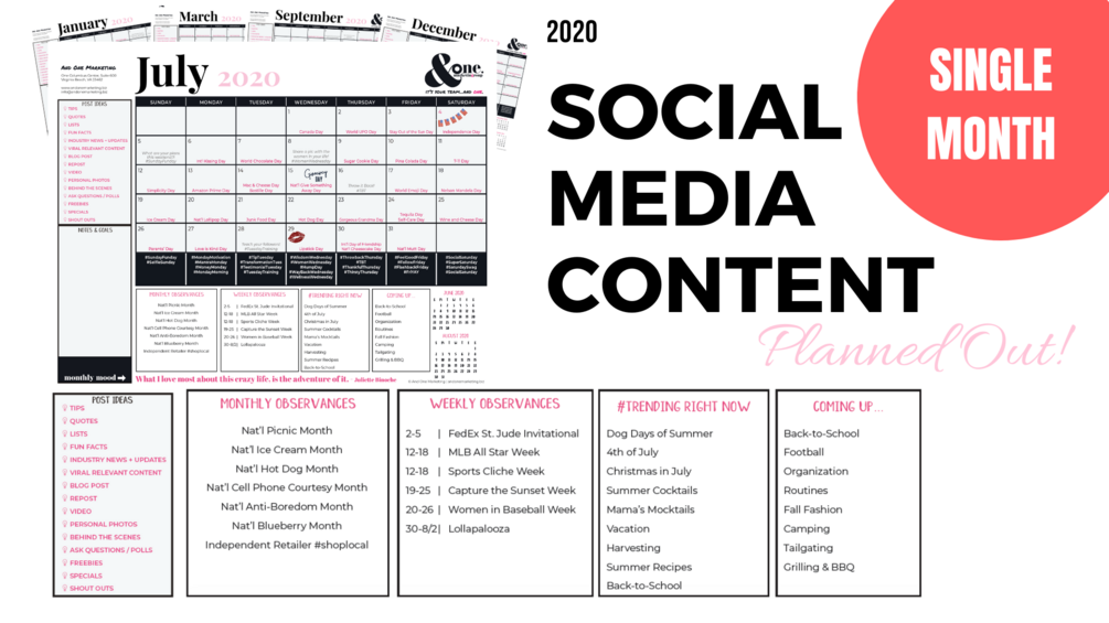 The difference between successful social media marketing and failed attempts is a simple matter of planning. With our monthly content calendar, you can fill in the gap days of posting and operate your business or blog with a true social media plan of attack. Without killing your brain cells.